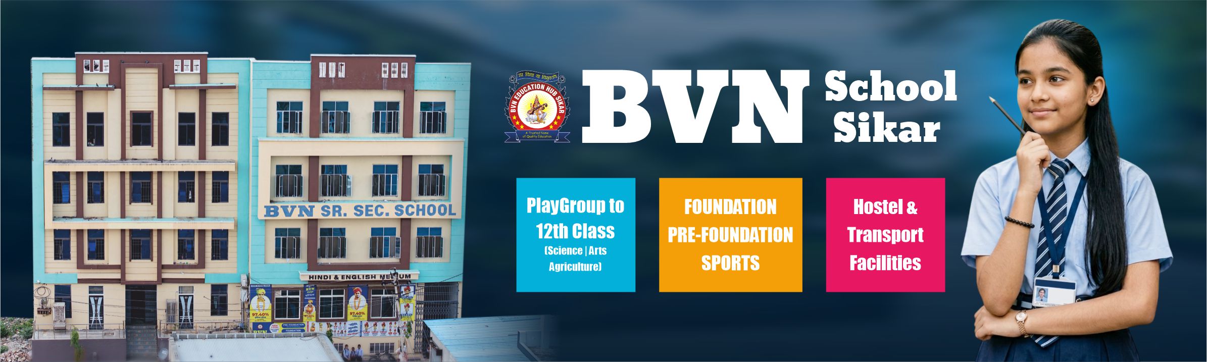 BVN School is a leading English & Hindi medium school in Sikar, Rajasthan. The school aims at developing the moral, intellectual, and physical qualities of the children, moreover, instilling in them a strong social sense. The school is fully aware of the great responsibility of laying down the very foundation of the child's Intellectual formation. Hence the curriculum has been arranged so efficiently as to achieve this objective.